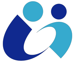 This features a blue and white logo that represents a baby. The logo is composed of two people, one on the left side and another on the right side, holding each other in an embrace. The people are depicted as blue and white circles, with their arms around each other. This design suggests a sense of love and care for the baby, emphasizing the importance of family and support during early childhood development.