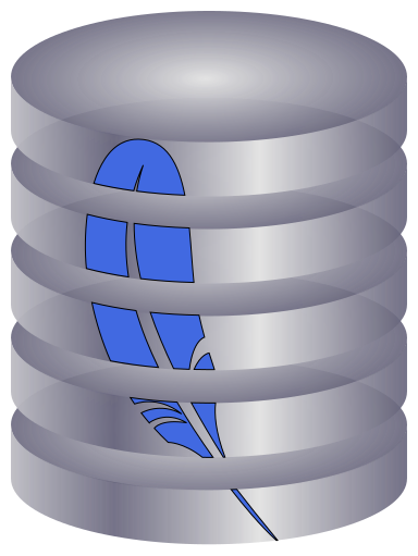 This features a blue and white feather, which is the icon for SQLite databases. It appears to be an artistic representation of the database symbol combined with a feather, giving it a unique and visually appealing appearance. The feather's colors are predominantly blue, with some white accents, creating a striking contrast against the background. This image could be used as a logo or symbol for various purposes related to databases or technology.