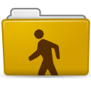This features a yellow folder with an icon of a man walking. This man is depicted as a silhouette, giving the impression that he is in motion. The folder itself appears to be a file or document organizer, and it is likely used for storing various types of files or documents. The overall design of the folder gives off a sense of organization and orderliness, making it an appealing choice for managing one's digital belongings.