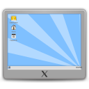 This features a computer screen with a blue background and white sunbursts. On the screen, there is an icon for X that stands out against the blue backdrop. The desktop wallpaper appears to be a mix of blue and white colors, creating a visually appealing contrast. This unique design choice gives the impression of a futuristic or modern computer setup.