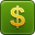 This features a green button with a dollar sign on it. This button is likely used to represent money or financial transactions in some context, such as a game or an app. The color of the button is predominantly green, which may be associated with wealth or prosperity. The design of the button suggests that it could be part of a larger collection of icons representing various categories or themes.