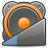 This is a small icon that features an orange circle with a white dot in the middle. This icon appears to be related to music, possibly representing a speaker or a record player. The color scheme of this icon consists of shades of blue and gray, giving it a modern and sleek appearance. Overall, the image conveys a sense of technology and entertainment, with its simple yet visually appealing design.