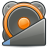 This features a large orange circle with an orange dot in the center. This circle is likely used as a play button or to represent a volume control, given its size and prominence within the image. The overall design of the image gives it a retro feel, reminiscent of older icon themes from operating systems like XFCE.