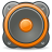 This features a square-shaped button with an orange circle in the middle. This button is likely used to control or activate something, possibly related to sound or music. The orange circle stands out against the darker background of the button, making it easy to identify and interact with.