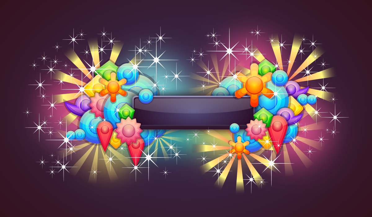 This features a dark blue banner with a bright, colorful design. The banner is adorned with various shapes and colors, including stars, balloons, and other decorative elements. These vibrant designs create an eye-catching and lively atmosphere around the banner. The combination of the dark blue background and the colorful shapes creates a striking contrast that draws attention to the design.