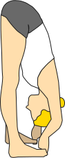 This features a person in an unusual and unconventional yoga position. They are bending over backwards with their legs up, holding onto the back of their head while looking down at their feet. This pose is reminiscent of a cartoon character or a comic strip, giving it a playful and humorous appearance. The person's body is contorted in an awkward manner, making this position quite challenging to maintain for any extended period.