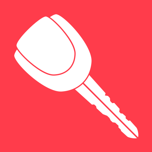 This features a red background with a white key and a white keyhole. The key is prominently displayed in the foreground, while the keyhole is located towards the right side of the image. This simple design highlights the key and its components, making it an effective visual representation of a key.