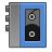 This features a blue and grey box with a blue background. Inside the box, there is an old-fashioned looking device that appears to be a speaker or a radio. The device has several knobs on it, which are likely used for adjusting settings or controls. The overall appearance of the object gives off a vintage vibe and suggests that it might have been used in the past for entertainment purposes.
