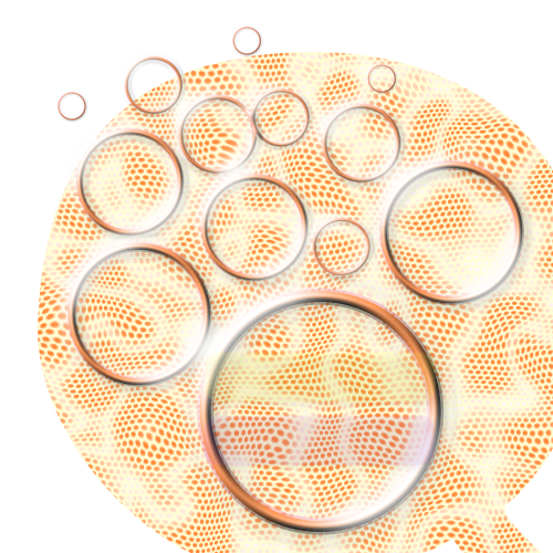This features a group of bubbles with black outlines, floating in the air. They are arranged in various positions and sizes, creating an interesting visual effect. The background is a vibrant orange color, which contrasts nicely with the bubbles. This artistic composition gives off a sense of depth and movement, as if the bubbles were captured mid-flight or in motion. Overall, it's a captivating image that showcases the beauty of these floating objects against a bold backdrop.