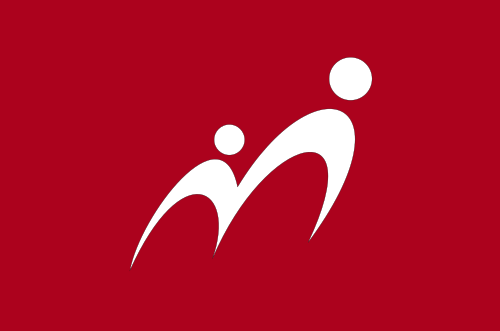 This features a red and white logo with the letter "I" in white. This logo is likely associated with a sports team or organization, as it has been described as a symbol for a running team. The design of the logo includes two people standing next to each other, which could represent unity or camaraderie among team members. The red background provides a striking contrast against the white letter and figures, making the logo stand out and easily recognizable.