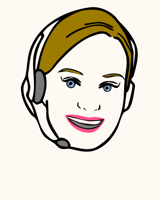 This features a woman with brown hair and blue eyes, wearing headphones. She is smiling brightly at the camera, giving off a friendly vibe. Her headphones are placed on her ears, emphasizing her connection to music or gaming. The overall scene appears to be a fun and lighthearted moment captured in this cartoon-like drawing of the woman.
