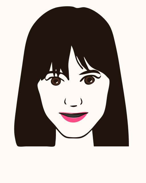 This features a woman with dark hair and brown eyes. She is wearing pink lipstick, which adds a pop of color to her appearance. Her skin appears pale white, giving her an elegant look. The woman's face is the main focus of the image, making it a close-up portrait of her features.