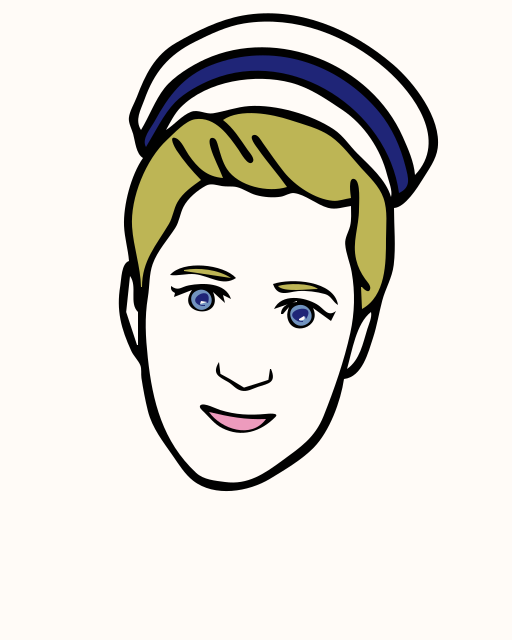 This features a cartoon drawing of a man with blonde hair, wearing a white cap with blue stripes. He has a smiling expression and appears to be looking directly at the viewer. The drawing is in black and white, giving it a classic or vintage feel. The overall appearance of the image suggests that it could be an illustration from a book or comic book, capturing the essence of a sailor character.