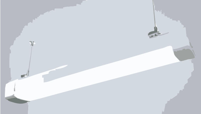 This features a white light fixture with three lights attached to it. These lights are mounted on the ceiling, providing illumination for the area below. The fixture is made of aluminum and plastic materials, giving it a sleek and modern appearance. It has an IP65 rating, ensuring that it can withstand various weather conditions and maintain its functionality. Additionally, the light fixture comes with a driver and LED tubes for easy installation and maintenance. The lights are available in different lengths, ranging from 60cm to 150cm, allowing customers to choose the option that best suits their needs. Overall, this light fixture is an excellent choice for warehouses, workshops, or parking areas looking to improve their lighting conditions.