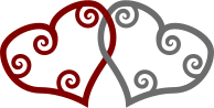 This features two hearts, one red and the other gray. They are both adorned with curly lines inside them, giving a unique appearance to these symbols of love. The red heart is positioned on the left side of the image while the gray heart is situated on the right. This creative design showcases the versatility of hearts as decorative elements or symbols in various contexts.