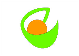 This features a green and yellow logo, which is an abstract design of a fruit. The fruit appears to be a combination of a banana and an orange, with the green color dominating the logo. The logo is displayed on a white background, making it stand out prominently. This unique design could represent a brand or company that uses fruits as their symbol or theme.