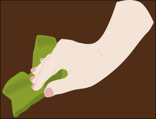 This features a person's hand holding a green object, possibly a piece of cloth or a rag. The hand is positioned in the center of the scene and appears to be gripping the item firmly. The person seems to be using the object for some purpose, such as cleaning or wiping something. The image may have been drawn by someone who needed a rag for their phonics classes, but it could also represent any other situation where a hand is holding onto an object.