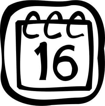 This features a black and white calendar with the number 16 written in large letters. The calendar is placed on top of a square, which adds an interesting visual element to the design. The overall appearance of the image gives it a unique and artistic touch, making it stand out from typical calendars.
