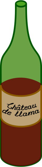 This features a bottle of wine with the label "Chateau de Llama." The bottle is brown and has a green tint, giving it an old-fashioned appearance. It appears to be filled with red wine, which can be seen through the glass. The label on the front of the bottle reads "chateau de llama," indicating that this particular wine comes from Chateau de Llama.