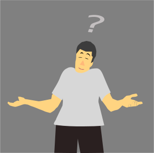 This features a man with his hands raised, giving the impression of shrugging. He has a question mark above his head, indicating that he is curious or seeking an answer to something. The background is gray, which adds to the overall atmosphere of the scene. This illustration could be used in various contexts, such as educational materials, advertisements, or social media posts, to convey a sense of curiosity or uncertainty.