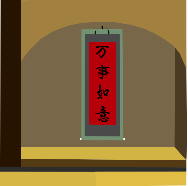 This features a red and white sign hanging on the wall, possibly in an Asian language. It appears to be a decorative piece or a greeting for the new year. The sign is placed above a window, which adds context to its location within a building. The combination of colors and the foreign writing make it stand out as a unique and eye-catching element in the space.