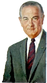 This features a man in his sixties wearing a gray suit and red tie. He is smiling, giving off an air of confidence and professionalism. His attire suggests that he might be a businessman or politician. The man's name is Lyndon B Johnson, as indicated by the portrait. This image captures a moment in time where Lyndon B Johnson appears to be proudly showcasing his appearance and demeanor.