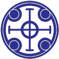 This features a blue and white circle with an intricate design. Inside the circle, there is a cross shape that stands out against the background. The circle itself has a swirling pattern, giving it a unique and eye-catching appearance. This design could be used for various purposes such as decoration or symbolism in religious or spiritual contexts.