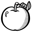 This features a black and white drawing of an apple with a straw sticking out of it. The apple is depicted in various stages, including the stem and the top of the apple. The straw is positioned at the center of the apple, creating a unique visual effect. This artistic representation of an apple with a straw adds a creative twist to the classic fruit image.