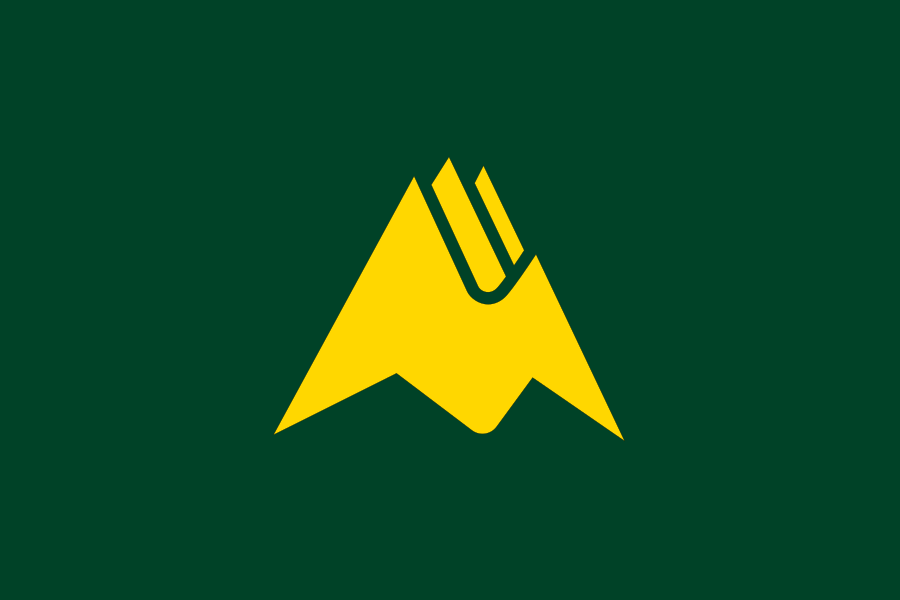 This features a green and yellow logo, which is an emblem of the mountains. This logo consists of a triangle with a yellow mountain peak inside it. The design is simple yet visually appealing, making it an attractive symbol for outdoor enthusiasts or those who appreciate nature. The color scheme of green and yellow adds to the natural theme, creating a sense of harmony between the emblem and its surroundings.