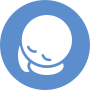 This features a blue circle with an illustration of a sleeping person. The person is lying down and appears to be resting comfortably, possibly in a bed or on the floor. The design of this icon suggests that it could represent a symbol for relaxation or sleep, making it suitable for various applications such as websites, apps, or other digital platforms.