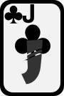This features a card with the letter J on it, surrounded by four black diamond shapes. These diamonds are arranged in such a way that they form a cross-like shape around the letter J. The card itself is white and appears to be part of a deck of cards. The arrangement of the diamonds creates an interesting visual effect, making the card stand out from typical playing cards.