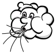This features a cartoon-like cloud with a face drawn on it. It appears to be blowing wind, as its mouth is open and the wind is visible coming out of it. The cloud has a black outline, giving it a more defined appearance. This whimsical drawing adds a playful touch to an otherwise ordinary scene.