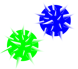 This features two brightly colored, odd-shaped balls placed on a white background. One of the balls is green and the other one is blue. They both have multiple spikes protruding from their surfaces, giving them an interesting and unique appearance. The spikes are distributed all over the surface of each ball, creating a visually striking contrast against the white background.