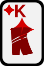 This features a card with the letter K on it. The letter is red and appears to be part of a deck of cards, possibly a funky or unique design. The card has a black background, which contrasts nicely with the red letter. This card could be used for various purposes such as playing games, learning new words, or even as an artistic piece in a collection.