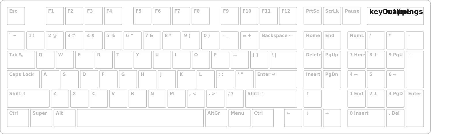 This displays a keyboard with white keys and black outlines. It is a rectangular shape, making it suitable for use on various devices such as computers or laptops. The keys are arranged in rows, with each row having different functions depending on the key pressed. This type of keyboard design allows users to easily identify and access specific keys without confusion. Overall, the image showcases an essential piece of technology that is commonly used for typing and navigating digital content.