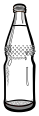 This features a bottle of water with a black outline, which is placed on a brown background. The bottle appears to be empty and has a white label. It is positioned in the center of the scene, taking up most of the frame. The overall appearance of the bottle gives it an old-fashioned look, possibly reminiscent of a classic soda bottle design.