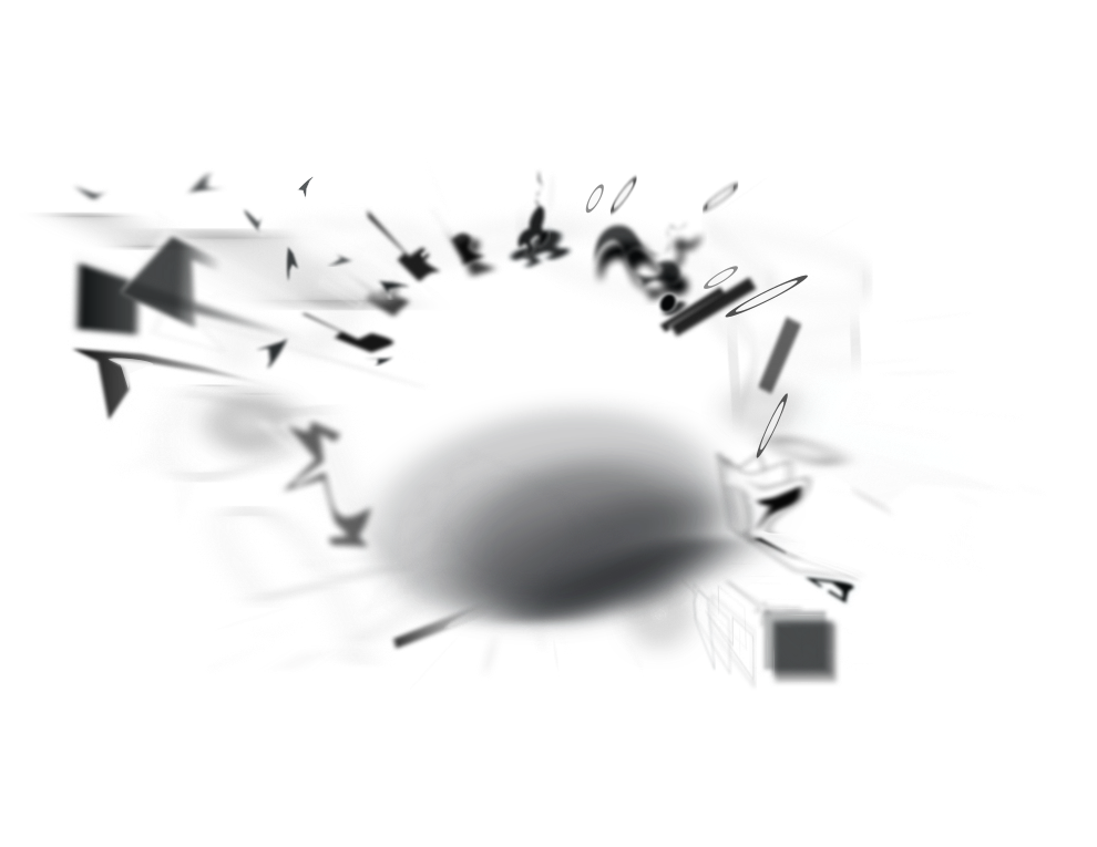 This is a black and white photo of an artistic composition, featuring various shapes and objects. In the center of the picture, there is a large circle surrounded by smaller circles, creating a visually interesting focal point. Surrounding this central circle are numerous other shapes, including squares, triangles, and other geometric forms. The overall effect is a creative and intriguing artistic piece that captures the viewer's attention.