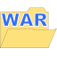 This features a yellow folder with the word "WAR" written in blue. The folder is open, revealing its contents. This could be an icon or symbol representing a file directory related to war or military topics. The color scheme of the folder and the wording create a sense of organization and orderliness, making it easy for users to identify and access the files within this folder.