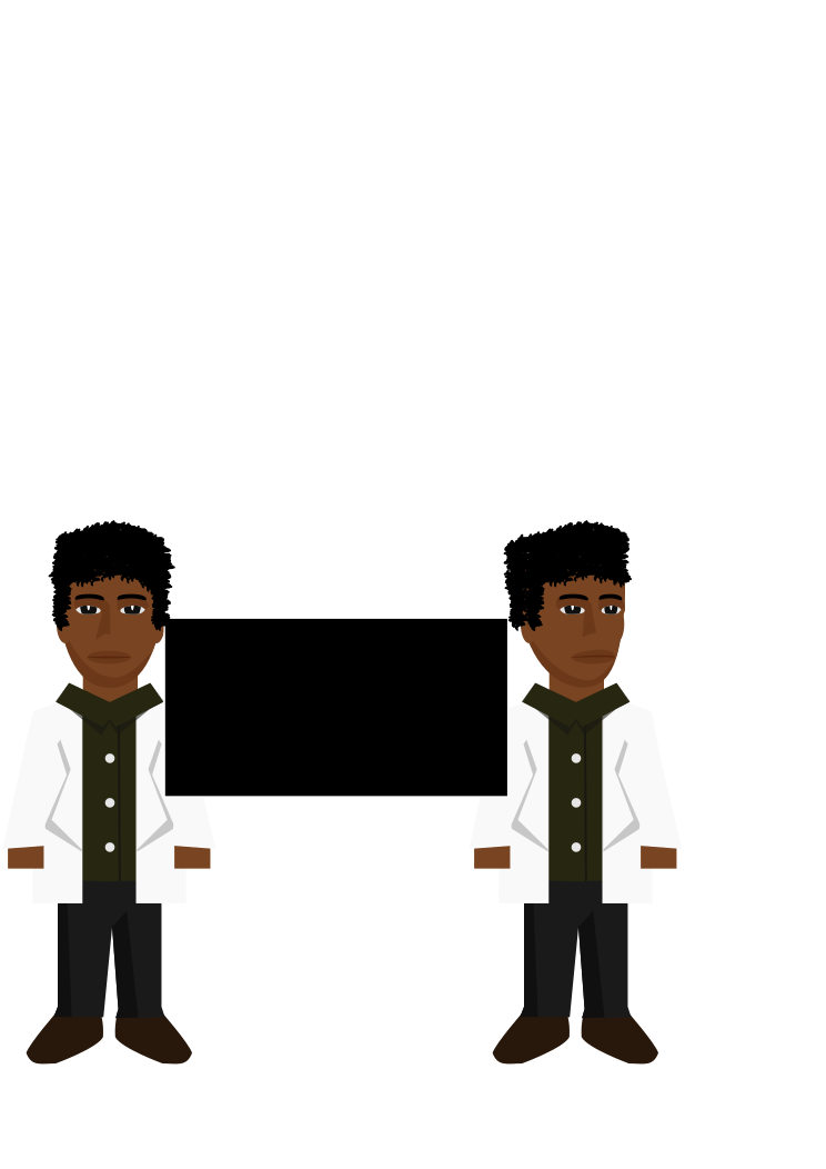 This features two cartoon-like figures, both wearing white lab coats and standing side by side. They appear to be scientists or researchers, as they are positioned in front of a black screen. Each figure has a hand on their hip, giving the impression that they might be discussing or presenting information related to their work. The overall scene is reminiscent of a comic book or animated cartoon setting, with the two figures being the main focus of the image.