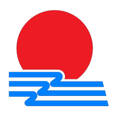 This features a red sun with blue waves surrounding it. The sun is positioned in the center of the scene, and its vibrant color stands out against the blue background. The waves are arranged in an arc shape, extending from the top left to the bottom right corner of the image. This unique design creates a visually appealing representation of the sun and ocean.