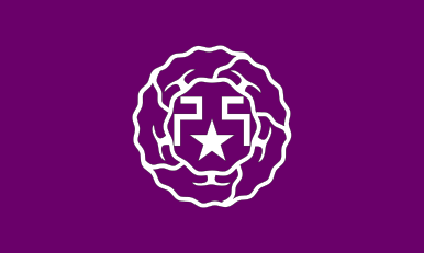 This features a purple background with a white star and a circle. Inside the circle, there is an emblem that resembles a flower or a stylized letter T. This design gives off a sense of elegance and sophistication. The combination of the star, circle, and emblem creates a visually appealing composition on the purple background.