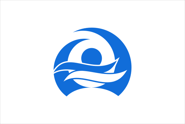 This features a blue and white logo that resembles crashing waves. The wave is depicted in the center of the logo, with its blue outline surrounding it. This unique design gives the impression of a flag or symbol, possibly representing an ocean-related theme or brand. The combination of colors and the wave's shape create a visually striking and memorable image.