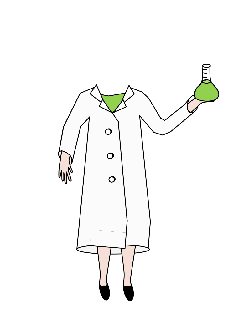 This features a cartoon-like drawing of a person wearing a white lab coat, holding a green glass beaker. The figure is positioned in the center of the scene and appears to be the main focus of the image. The lab coat is well-fitted on the character, giving it an authentic appearance. The beaker held by the person adds a sense of scientific curiosity to the scene. Overall, this drawing captures the essence of a scientist in action while holding their equipment.