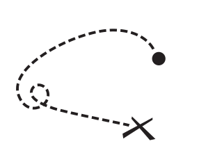 This depicts a drawing of a dotted line, which appears to be a path or route. Along the path, there is an X marking the destination, and a small black circle represents the starting point. Additionally, there are two arrows pointing in opposite directions, indicating that the path can be followed in either direction. The overall composition of the drawing suggests a clear and straightforward guide for navigating to the marked area.