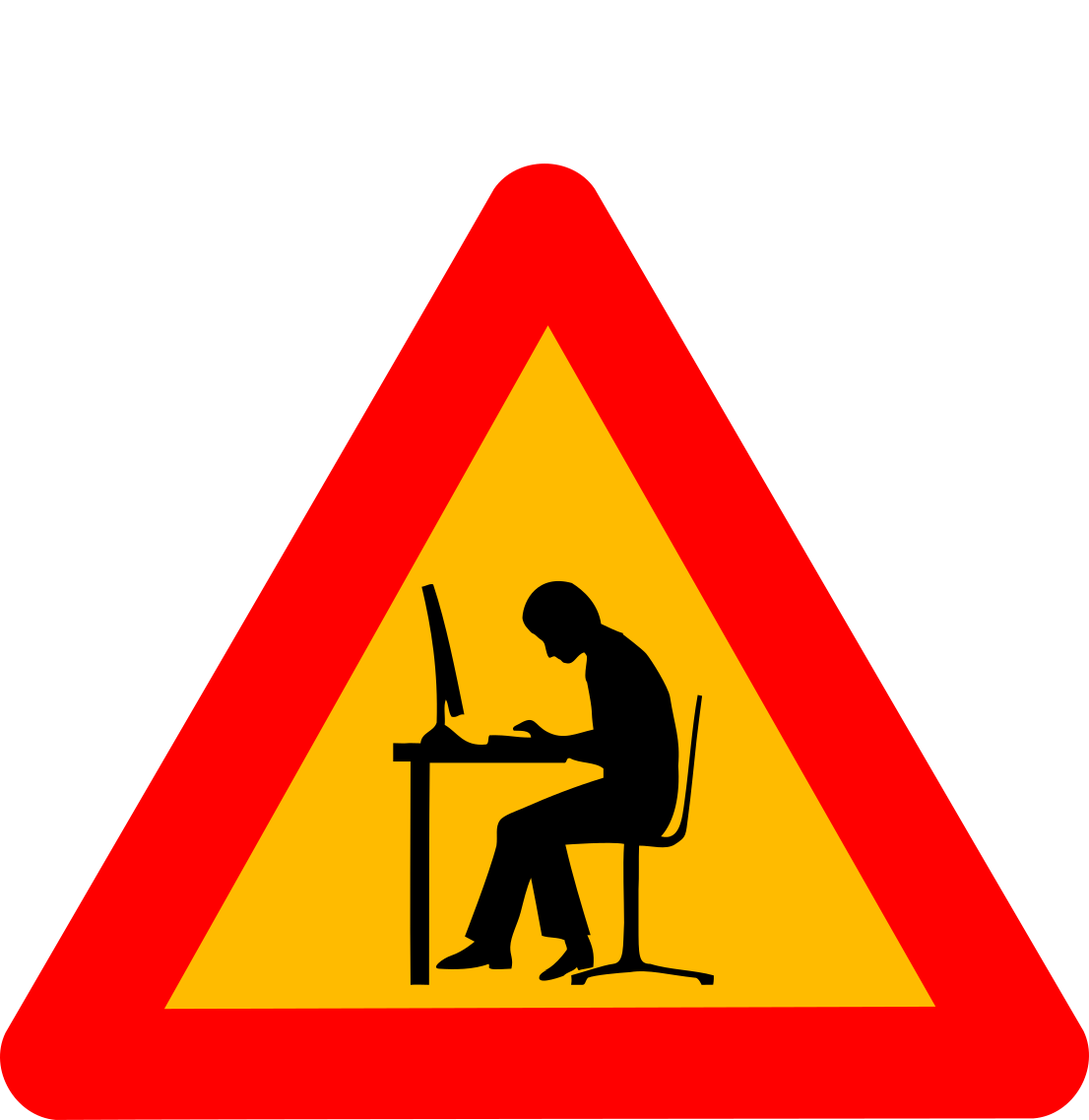 Tags: caution, computer, desk, geek, humor, man, road sign, warning