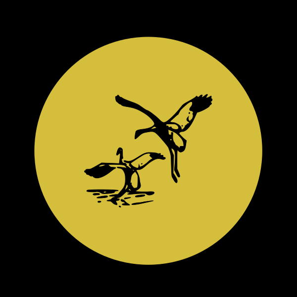 This features a yellow circle with an illustration of two birds in the center. One bird is flying, while the other bird appears to be sitting on top of a branch or a rock. The scene captures the dynamic movement and interaction between these two birds as they seemingly engage in their natural behaviors. The overall composition of the image creates a sense of harmony and balance, with the yellow circle providing a contrasting background for the birds' silhouettes.