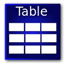 This features a blue square with the word "table" written in white letters. This could be an icon or a button representing a table, possibly for use in a computer program or application. The color scheme of the image is predominantly blue and white, giving it a clean and modern appearance.