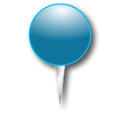 This features a blue and white pin or button, which is likely used for navigation purposes. It has a distinctive blue color with a white top, making it stand out against the background. The pin appears to be attached to a surface, possibly on a map or GPS device, indicating its use in locating specific points of interest. Its design and color make it easy to identify and differentiate from other objects in the area.