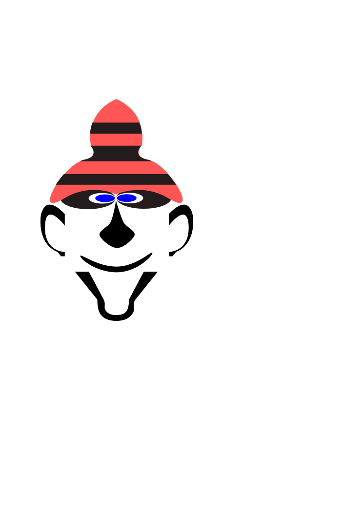 This features a close-up of a face with a red and black striped hat, giving it an amusing appearance. The face is smiling, adding to the playful nature of the scene. The hat appears to be worn by a clown or a character from a children's storybook, as it has a distinctive design that stands out against the background.