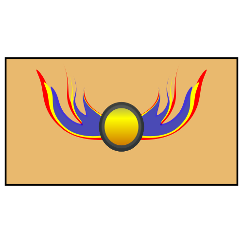 This features a blue and yellow flame design with a yellow center. This unique emblem is likely used as a symbol or logo, possibly representing a specific organization or event. The flames are spread out across the background, creating an eye-catching visual effect. The combination of blue and yellow colors adds to the overall appeal of this design, making it stand out against its light brown backdrop.
